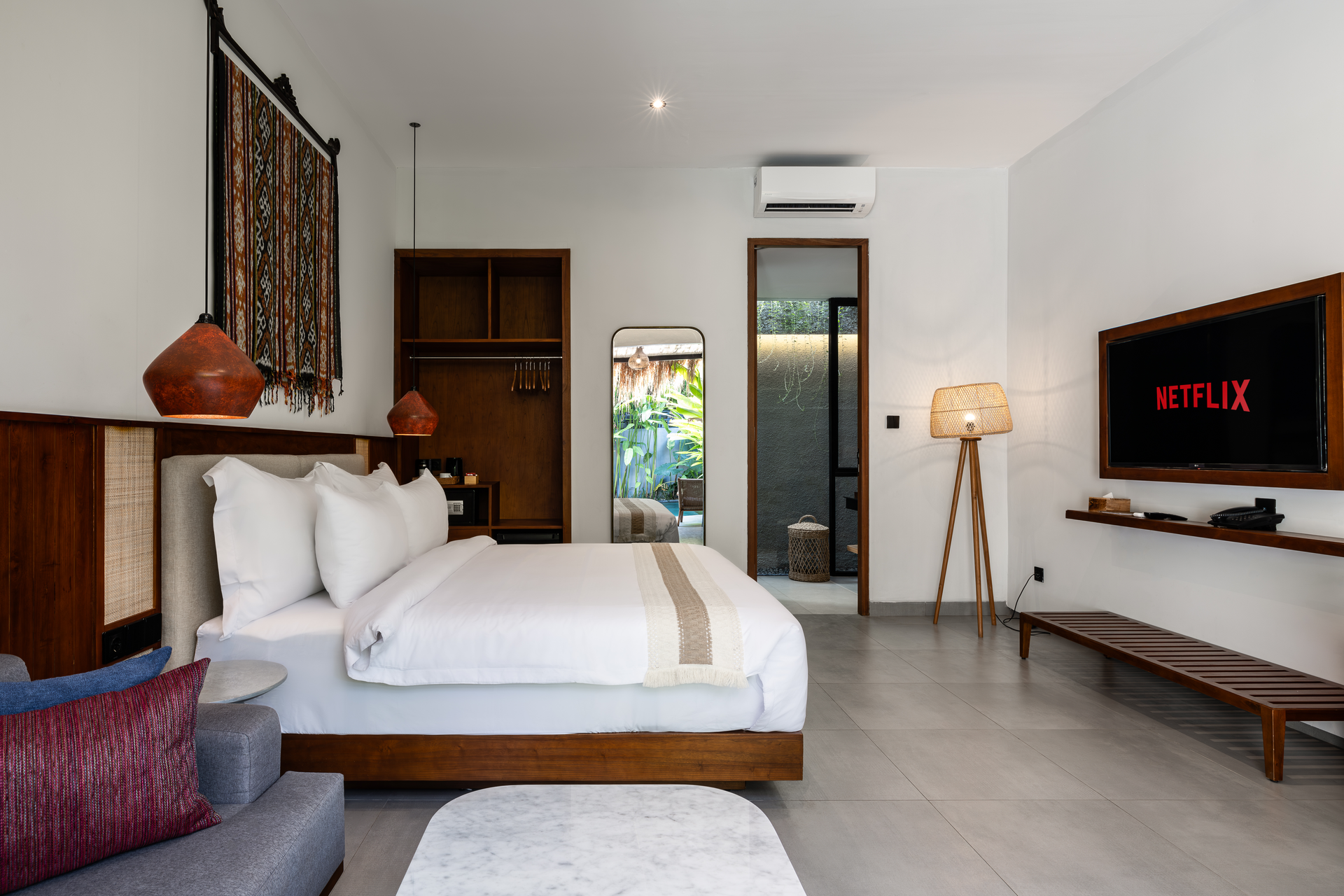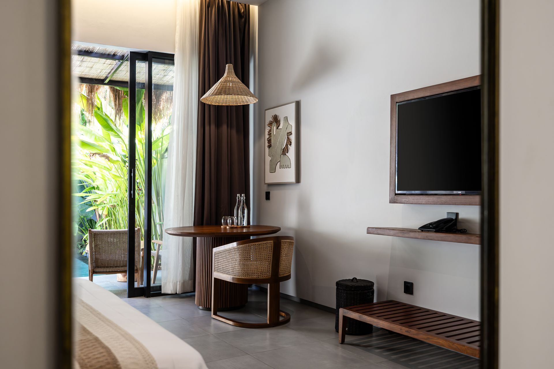 80 sqm Villa • Private Pool • XL King Bed • Luxury En-Suite • Sofa • Coffee Machine • Curated Minibar • Smart TV • Safe • Wi-Fi • Amenities