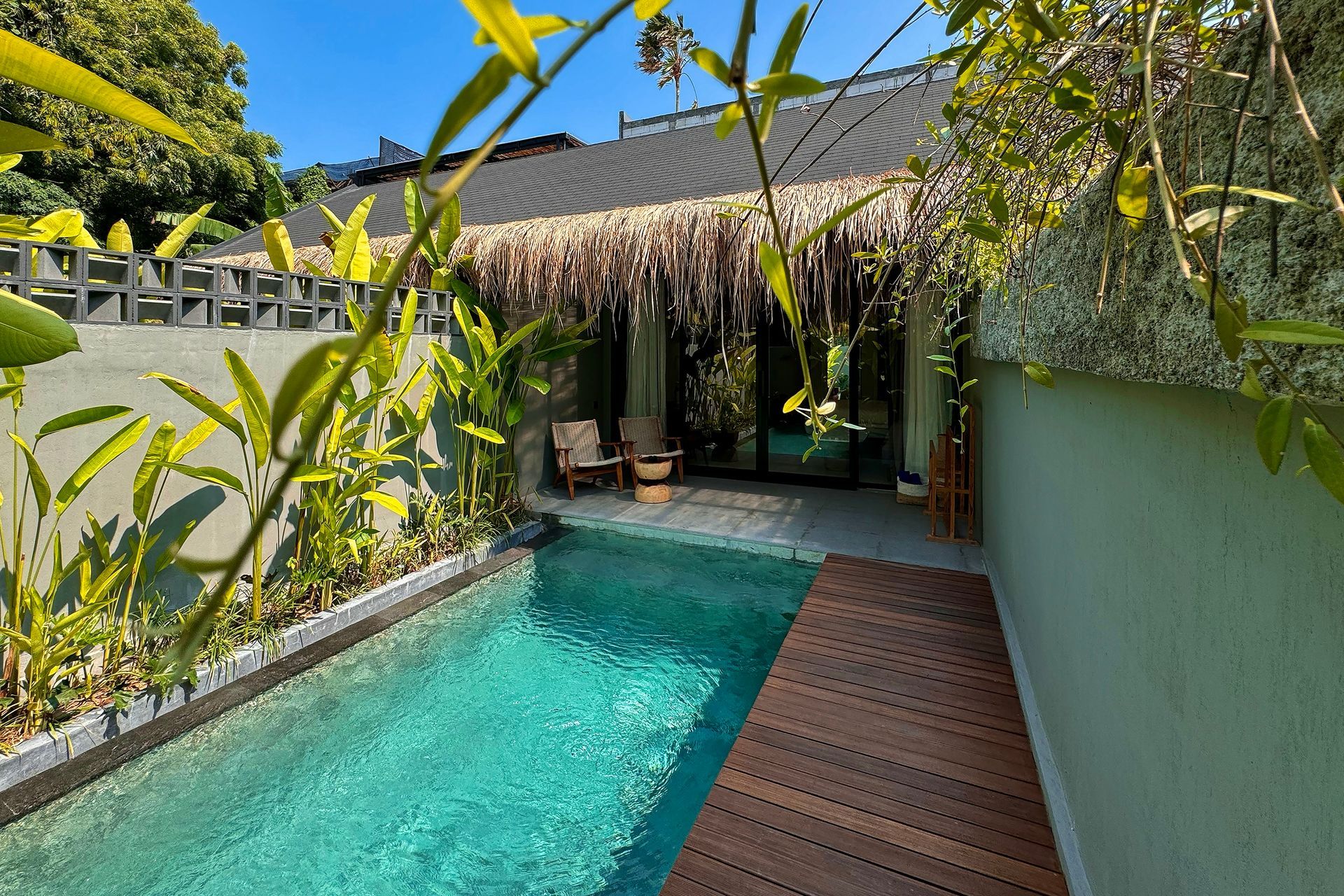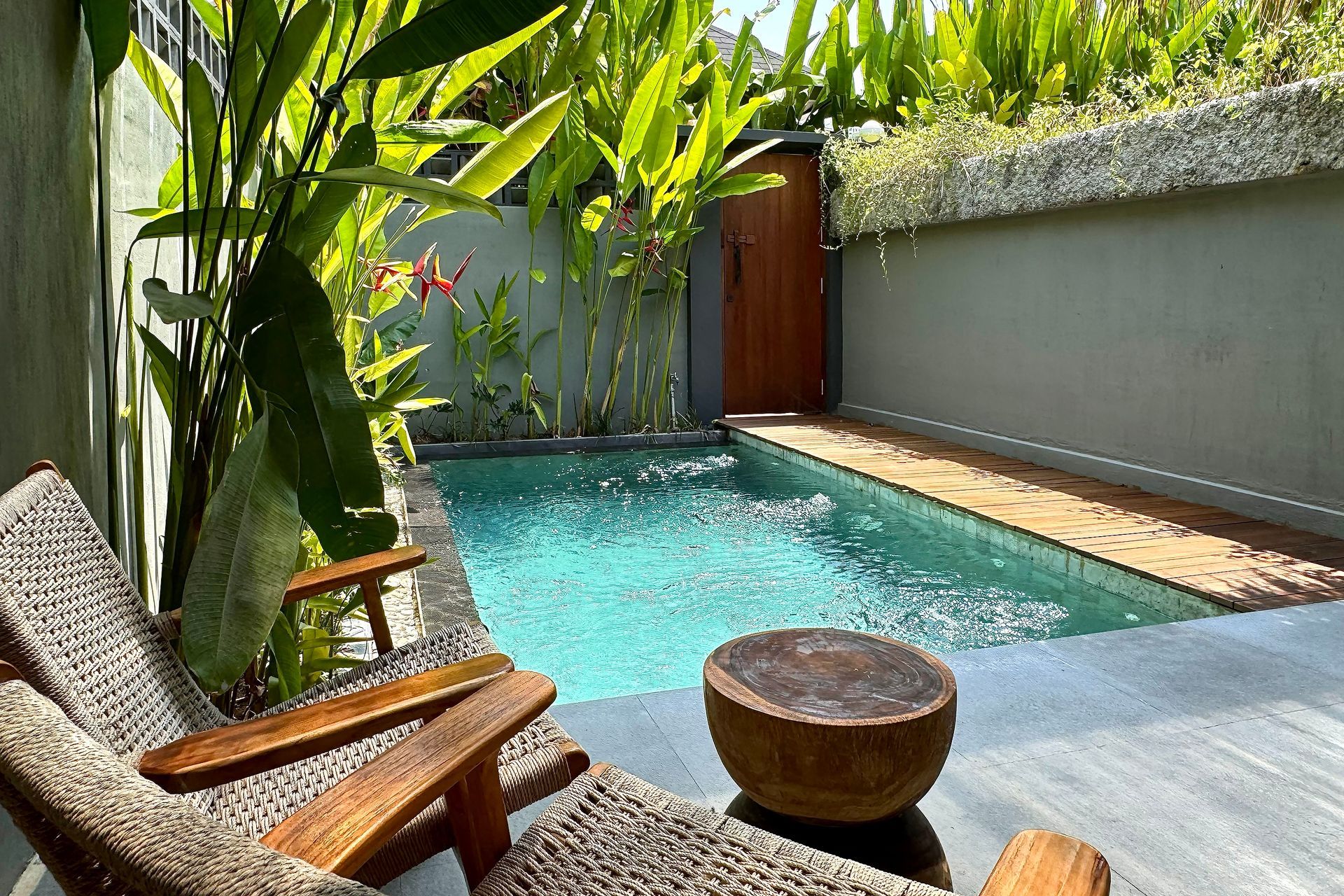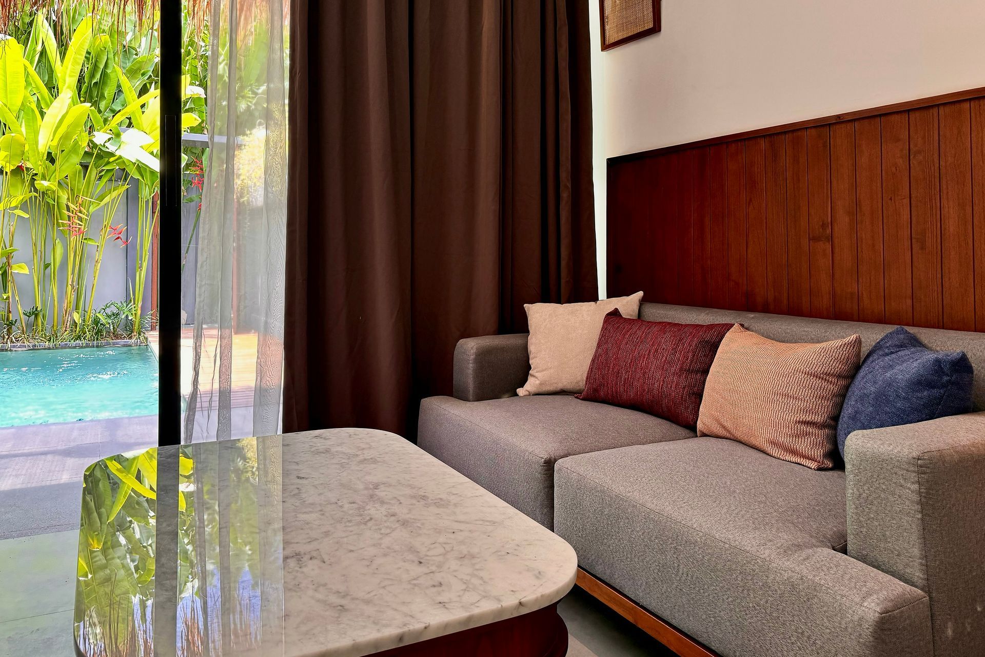 Tucked away near the beach, our villa offers an intimate escape where luxury meets tranquility. This 80 sqm sanctuary features a spacious bedroom with a king-size bed, a sleek en-suite bathroom, and refined modern comforts. Step outside to your own private pool, surrounded by lush greeneries.