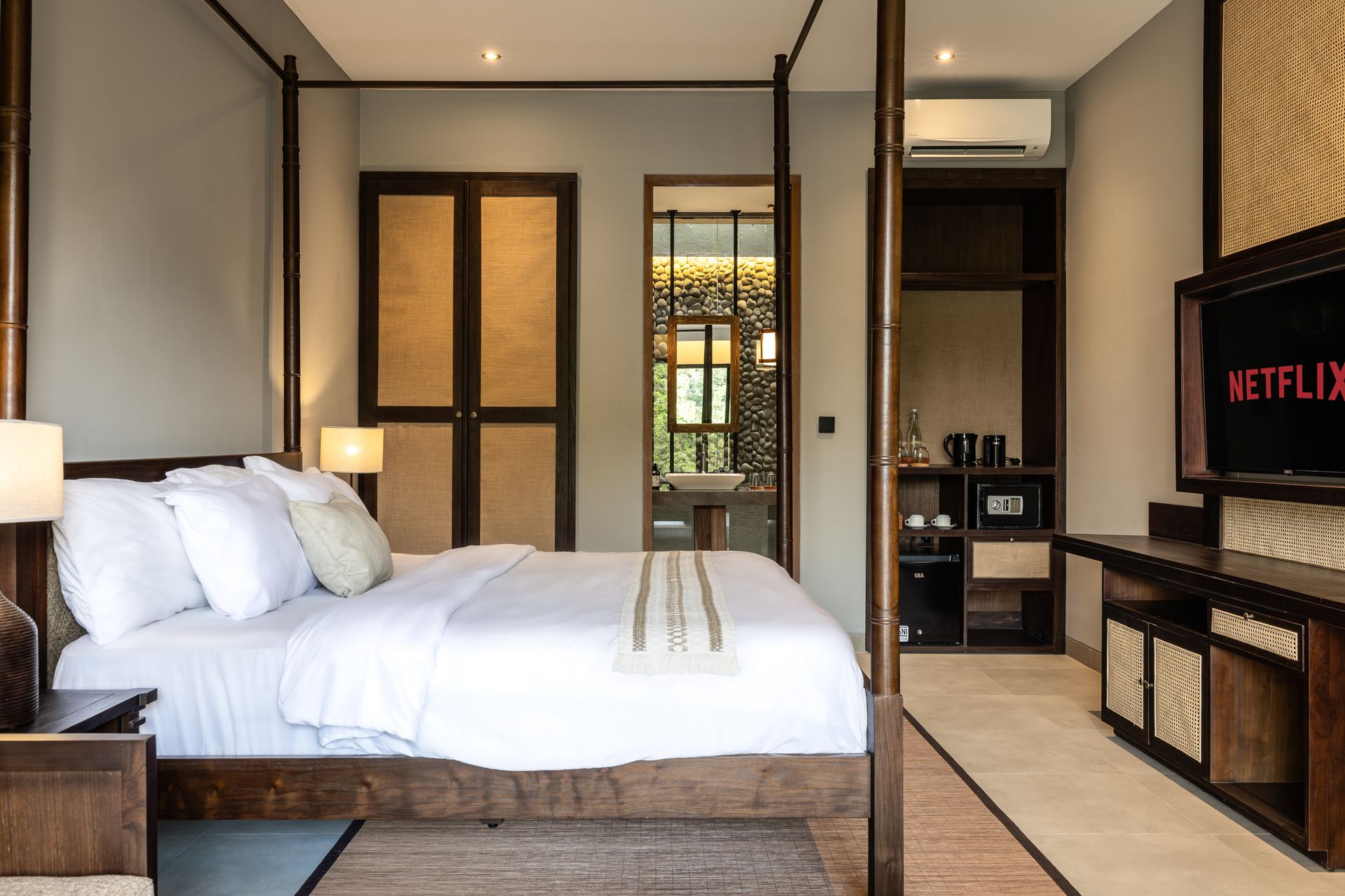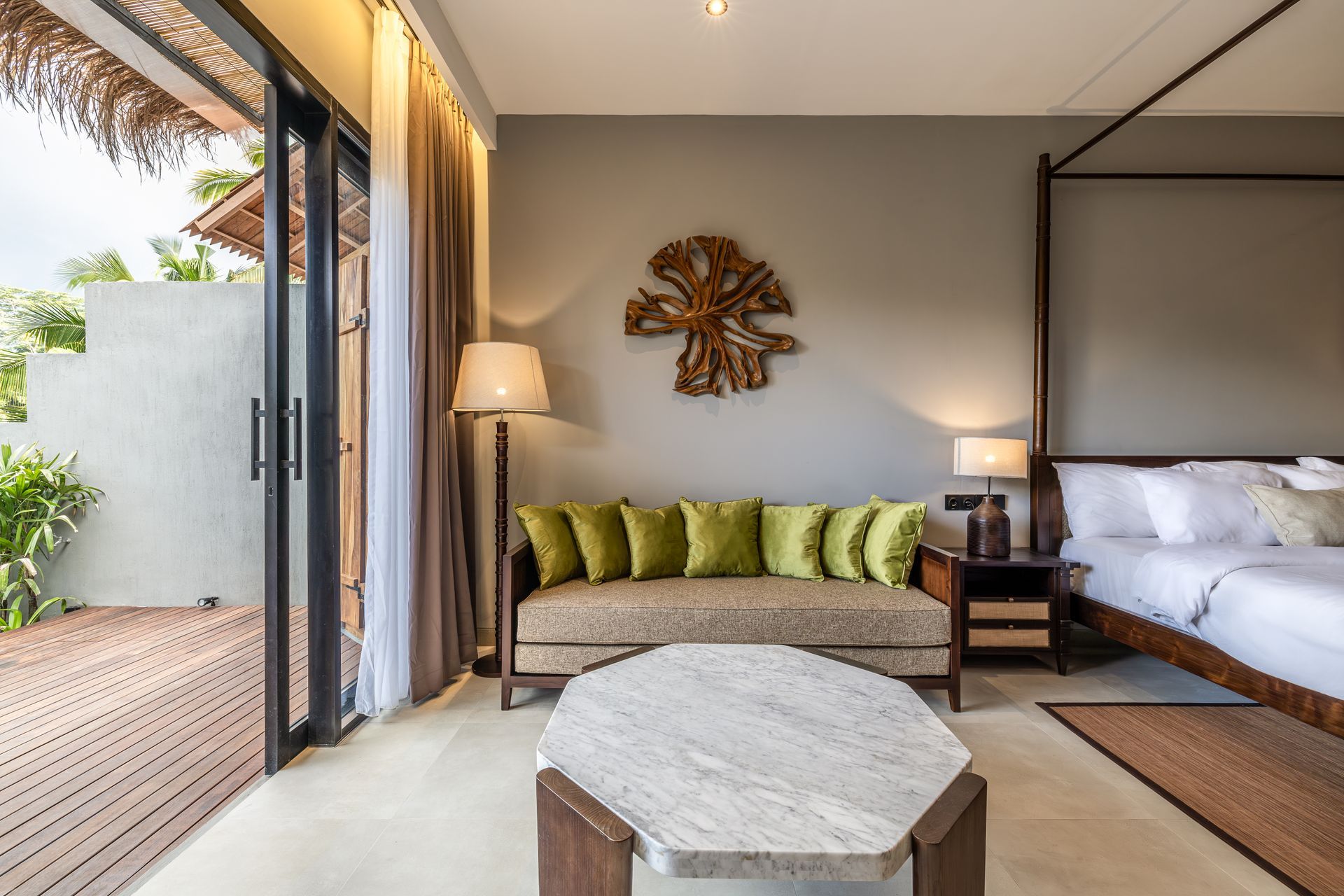 90 sqm Villa • Private Infinity Pool • XL King Bed • Luxury En-Suite • Spacious Sofa • Coffee Machine • Curated Minibar • Smart TV • Safe • Wi-Fi • Sunbed • Amenities